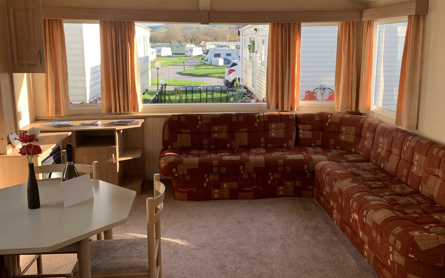 Retreat Wales is our 6 birth caravan with a double bedroom, twin room and fold out double bed in the living area.